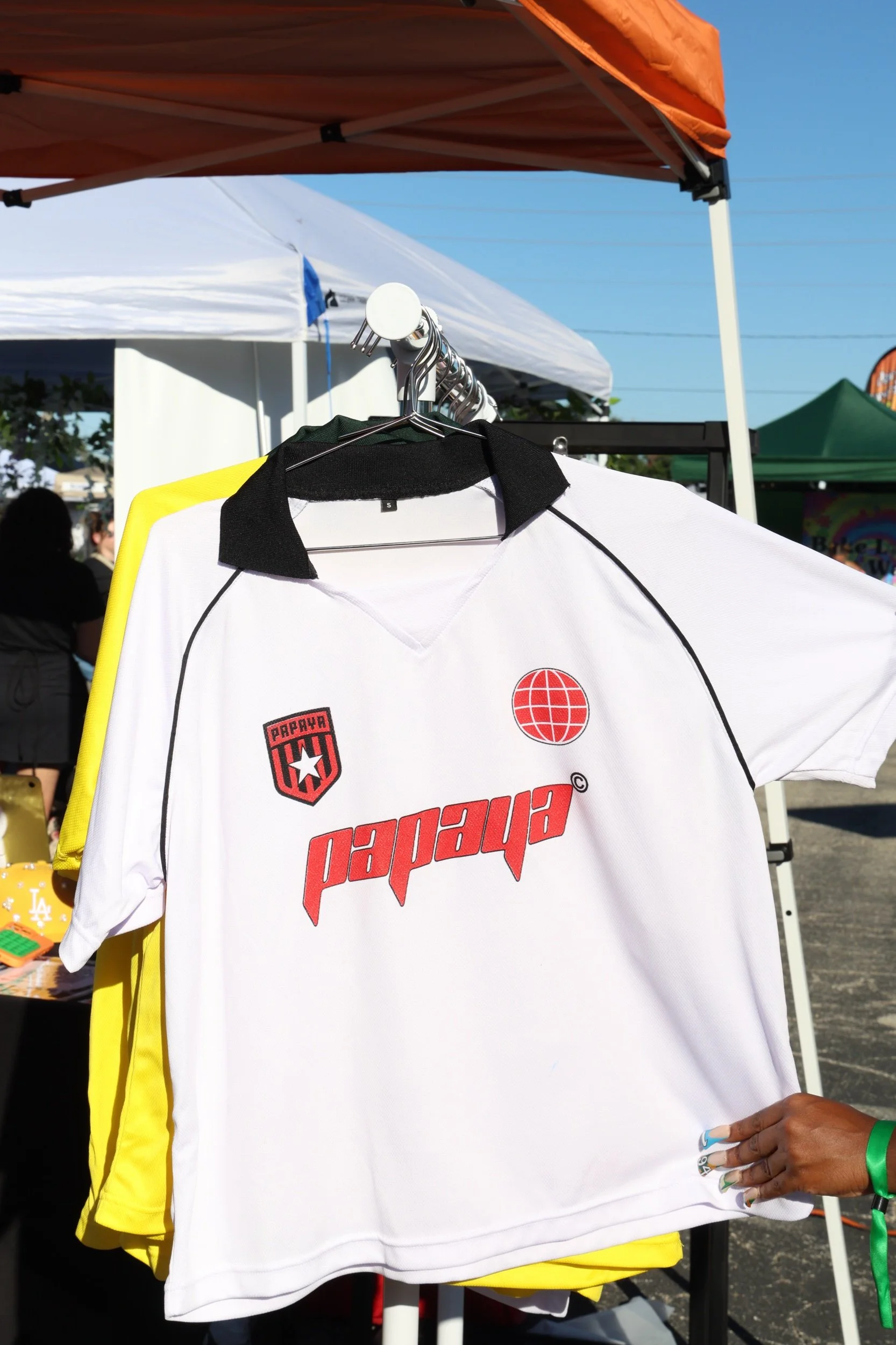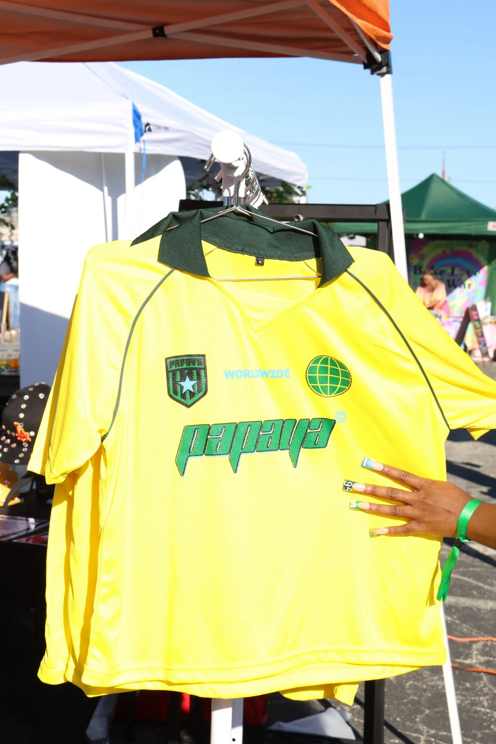 SHOP RED TRACK SUIT $180.00 BLUE TRACK SUIT $180.00 The World is Yours Levis Jacket $200.00 Papaya Soccer Jerseys $60.00 Teyana Taylor NY Snapback $200.00 Rugby Tees $120.00